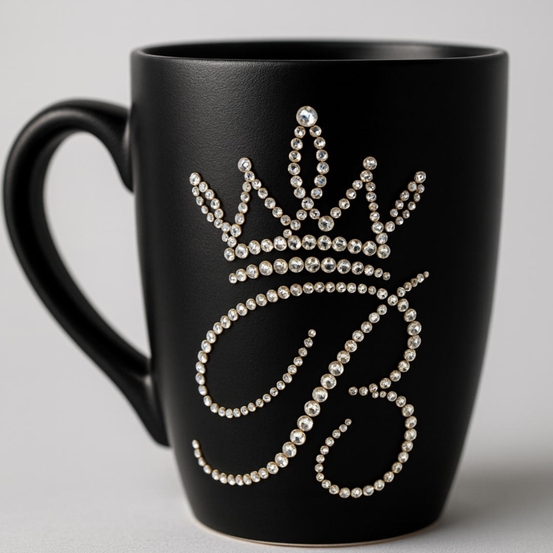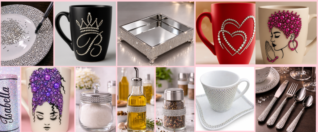 Aprenderás paso a paso la técnica de decoración con pedrería para transformar tazas y cualquier tipo de pieza en creaciones elegantes y brillantes, incluso si nunca has trabajado con pedrería antes.