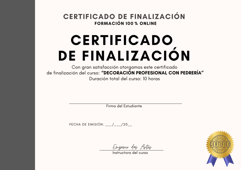 CERTIFICADO DECORACIÓN PROFESIONAL CON PEDRERÍA