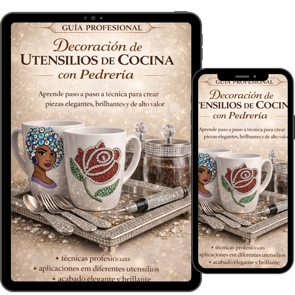 Aprenderás un método simple, paso a paso, para crear utensilios de cocina decorados con pedrería en menos de 1 hora, incluso si comienzas desde cero y sin ninguna experiencia.