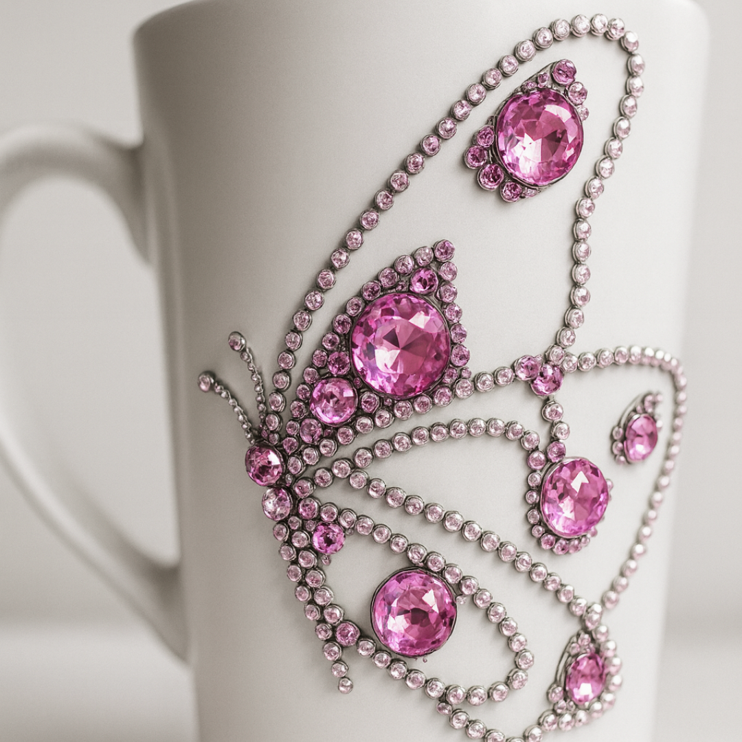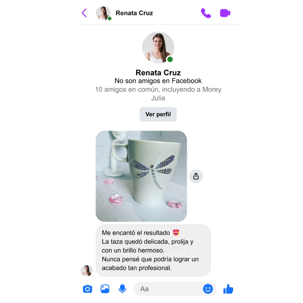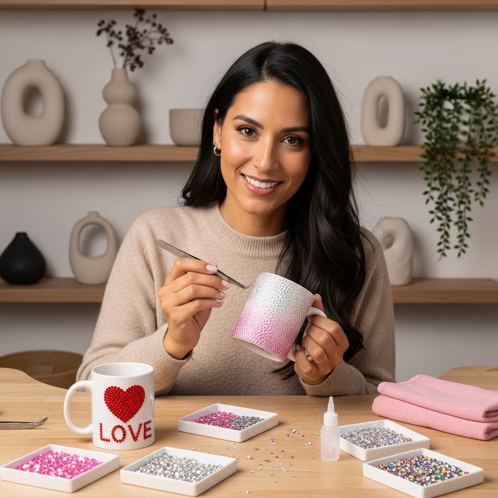 Creadora del método de tazas con pedrería y especialista en personalización artesanal de alto valor.