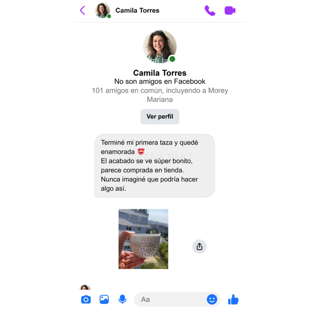 Camila Hernández es creadora artesanal y especialista en tazas con pedrería.